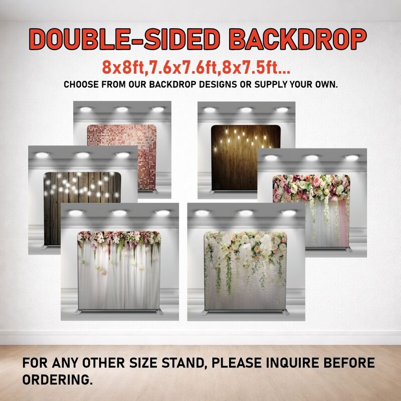 A custom design option is also available on these photo booth backdrops - if you are not happy with our stock designs, you are welcome to send us your own design, or to have our in-house designer work to create one with you.